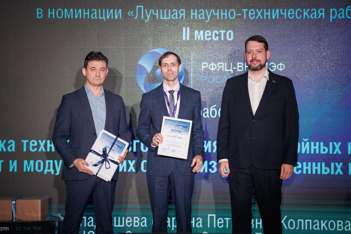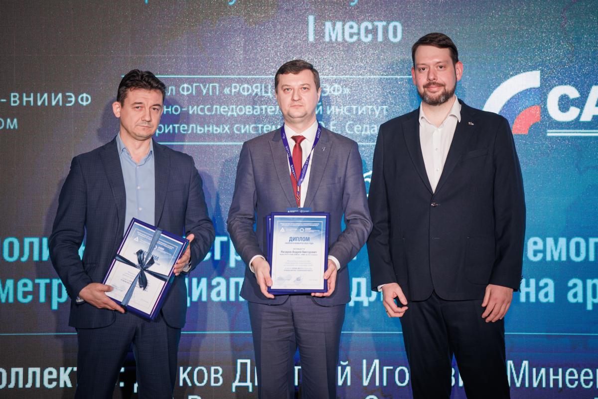 Дипломы и призы от компаний-партнеров лауреатам Конкурса вручали директор Департамента радиоэлектронной промышленности Минпромторга России Юрий Плясунов и генеральный директор ФГБУ «ВНИИР» Иван Иванов.