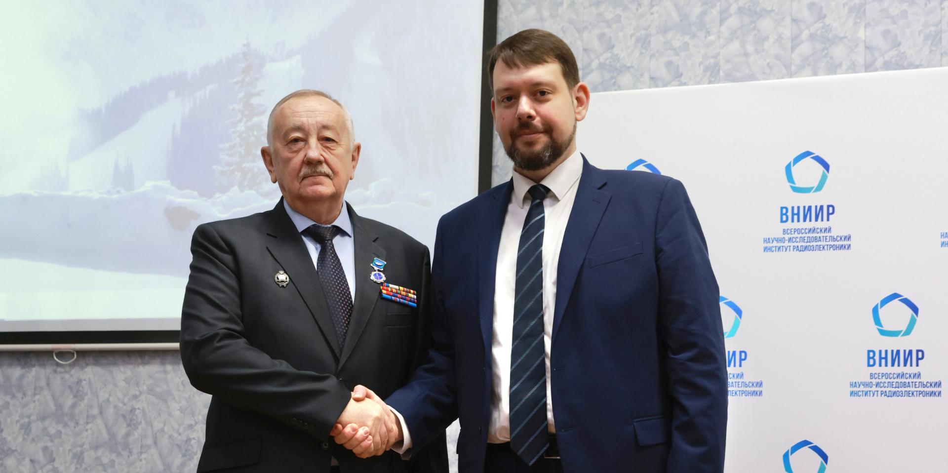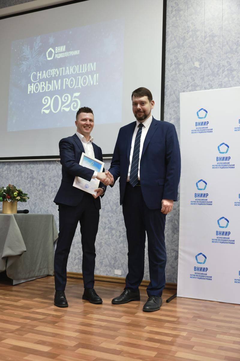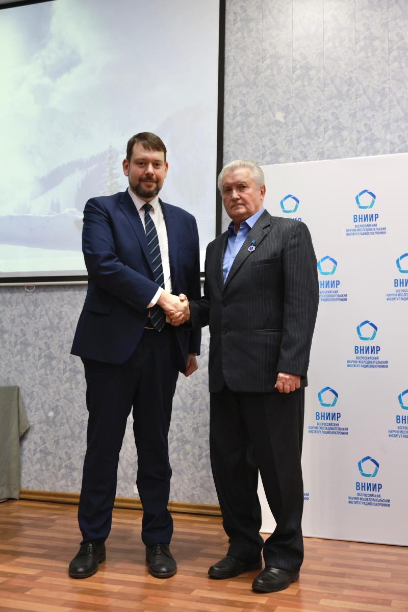 По завершении своего выступления Юрий Плясунов провёл торжественную церемонию вручения сотрудникам ВНИИР и приглашённым гостям корпоративных наград – медалей «За заслуги в радиоэлектронной промышленности», почётных грамот и благодарностей. Всего были отмечены заслуги 15 сотрудников ФГБУ «ВНИИР» и главного специалиста АО «Микрон» Александра Глухова.