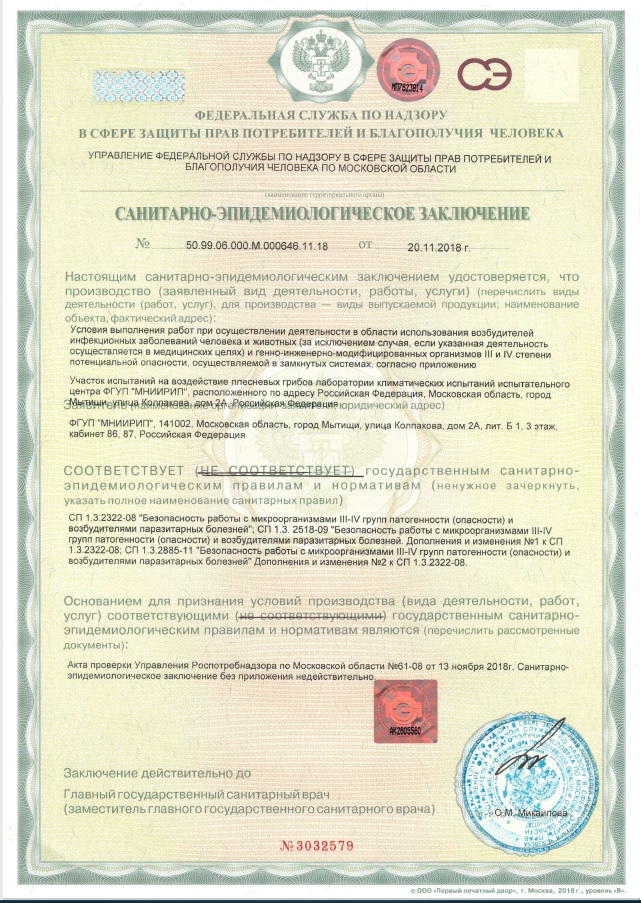 Область аккредитации позволяет проводить испытания на воздействие плесневых грибов широкого перечня образцов.
